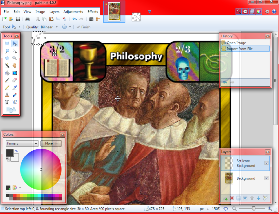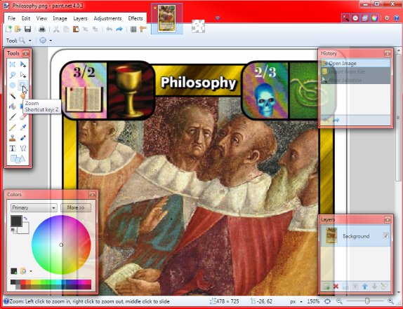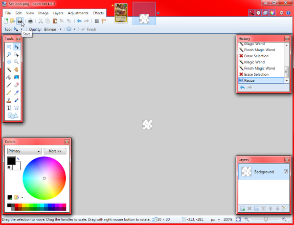 Step 7: Switch to your card image in Paint.Net and use the Zoom tool from the Tool palette to zoom in (you'll be working with your tiny icon so this helps you with moving it around).