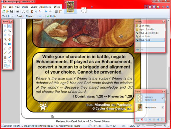 Step 10: Save your new card image. By default Paint.Net will want to save it as a .pdn (Paint Dot Net) file because you have multiple layers. If you want to be able to edit the image further (if you decide that you need to move the icon around a little bit more, for example) you can save a copy of it as a .pdn