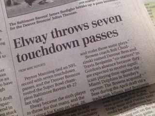 Probably the fact that a 53-year old who hasn't played in the NFL for the past 15 years threw seven touchdowns...